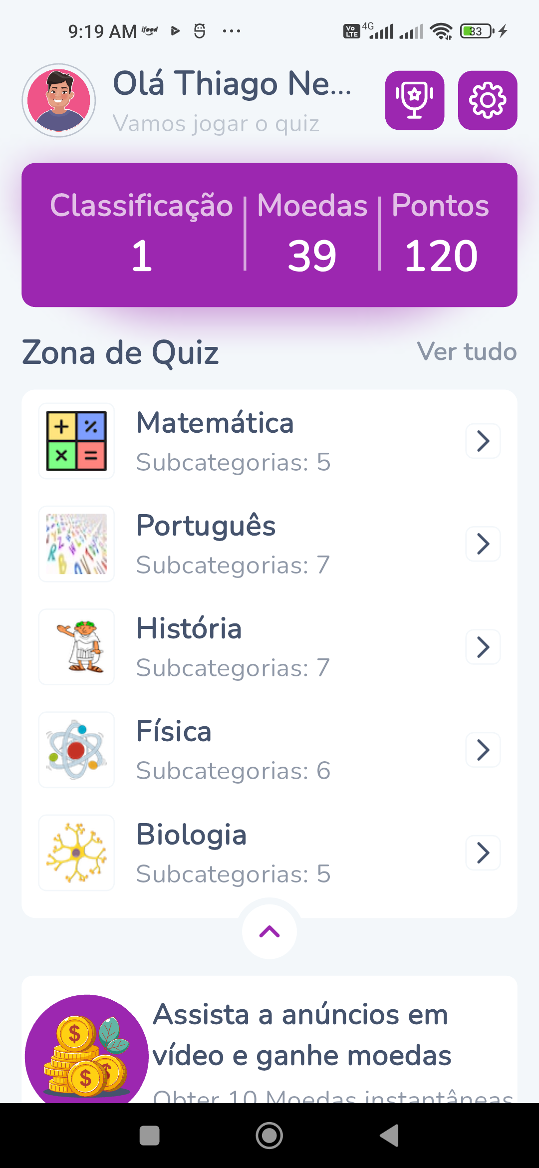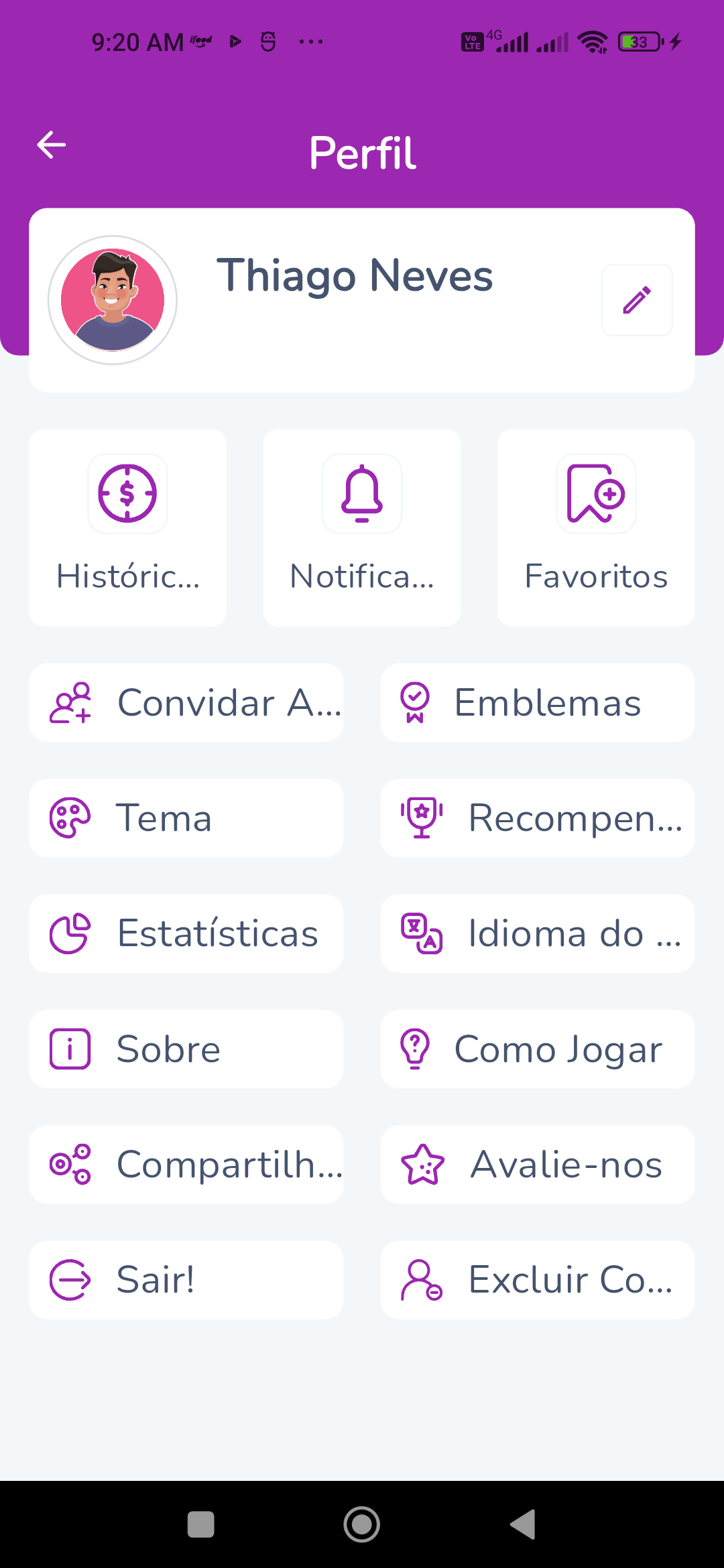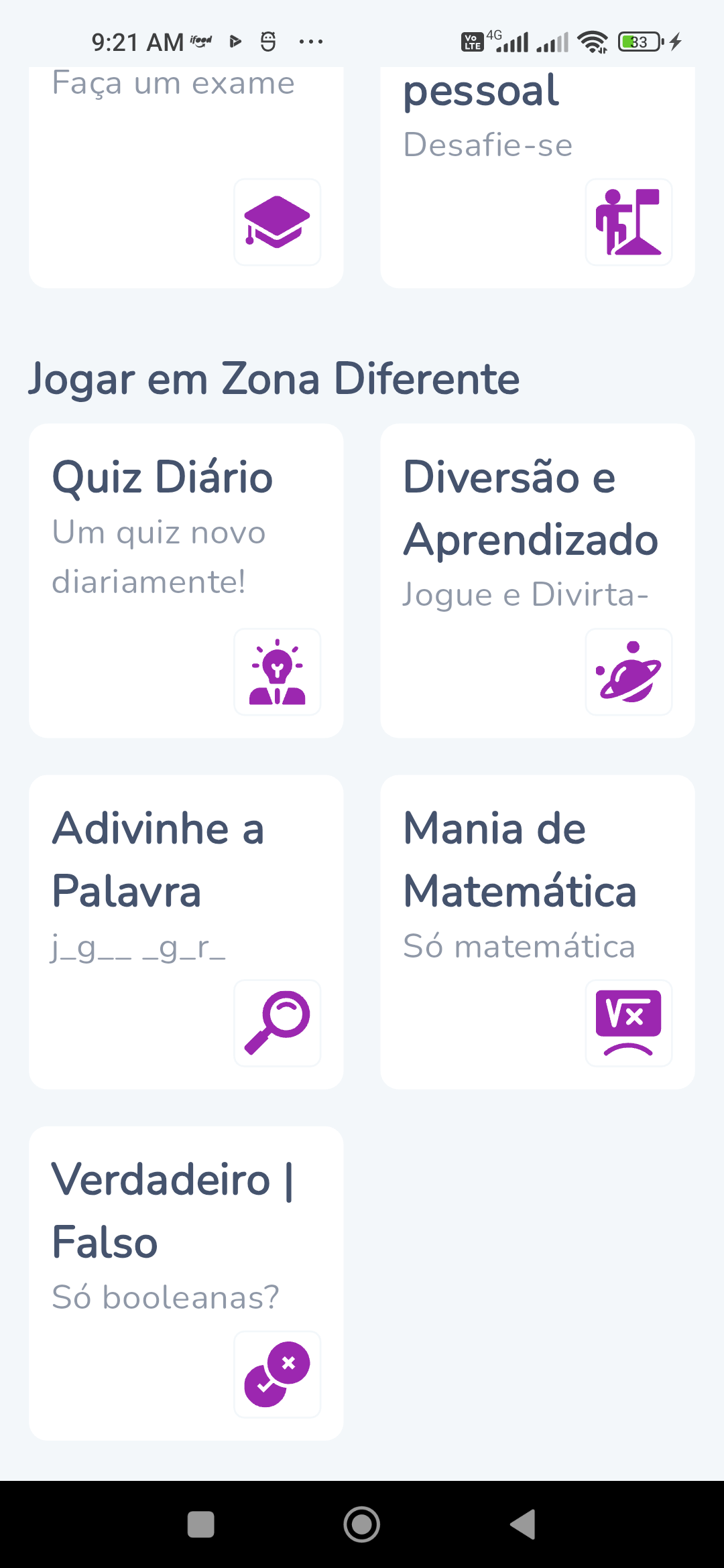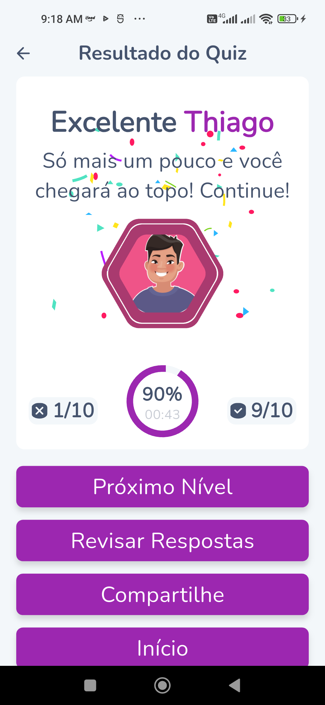 Temos vários níveis e vários tipos de quiz para que você tenha sempre um desafio diferente