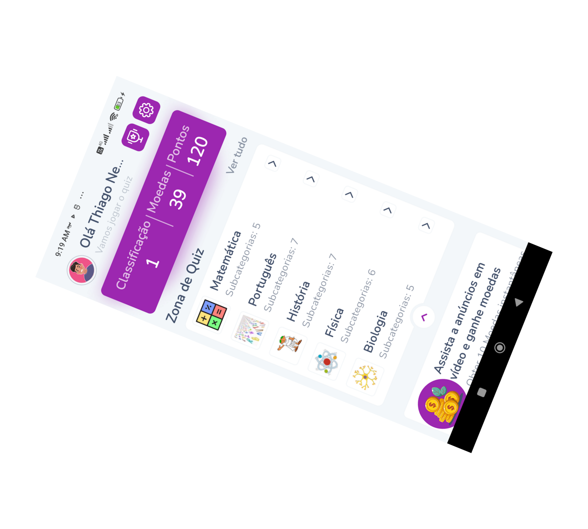 Nós criamos um aplicativo fácil de usar e totalmente gameficado, onde você se diverte aprendendo